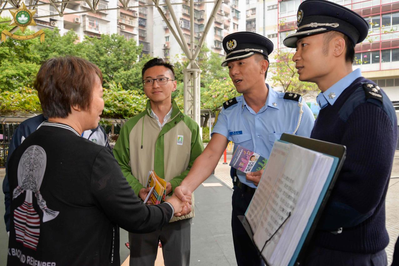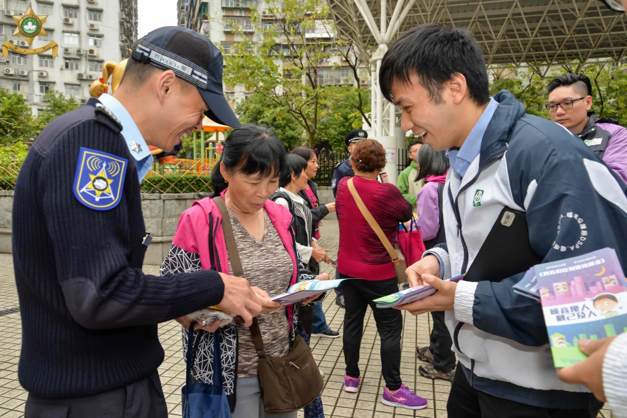 于4月16日上午,治安警察局、民政总署及环境保护局在佑汉公园一带,进行联合普法宣传活动,并邀请多名街坊一同探讨优化社区环境方案。