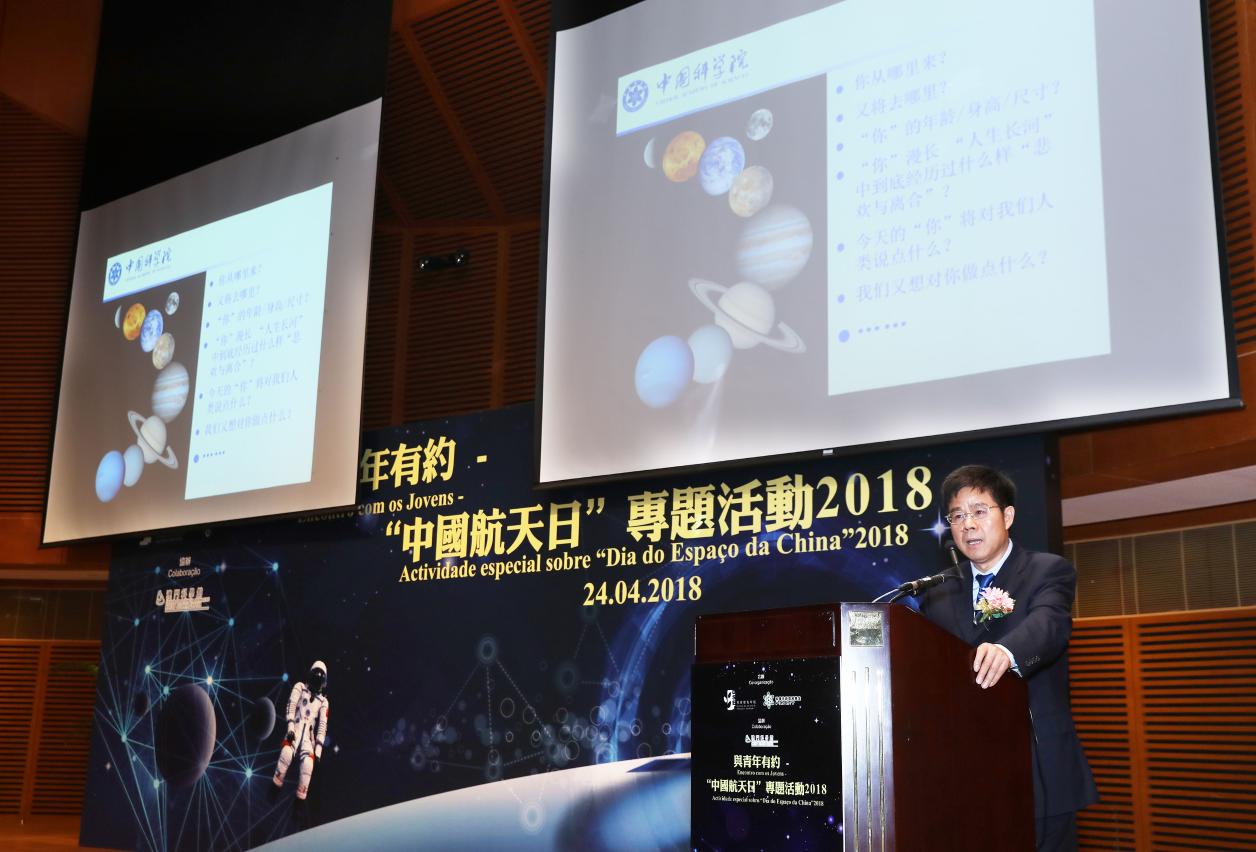 中华人民共和国国务院于2016年设立每年4月24日为“中国航天日”。为让澳门青年学生更瞭解国家航天事业和科普工作的开展情况,激发青年学生的科学探索精神,促进个人全面发展,教育暨青年局及科学技术发展基金合办,并由澳门科学馆股份有限公司协办的与青年有约──“中国航天日”专题活动2018的开幕仪式及座谈会于4月24日上午10时至12时假澳门科学馆会议中心顺利进行。