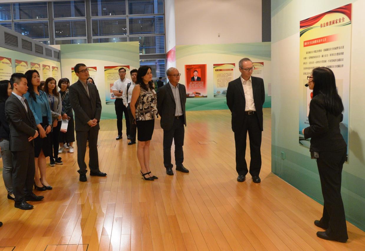 高教办主任苏朝晖、副主任何丝雅、曾冠雄联同高教办人员走进回归贺礼陈列馆观看影片,认识《总体国家安全观》的核心内容和国家安全的重点领域;其后,高教办人员一边仔细参观展览,一边认真听取导赏员的详细介绍,加深对总体国家安全观、依法维护国家安全、传统与非传统国家安全、国家安全全民有责等内容的瞭解。