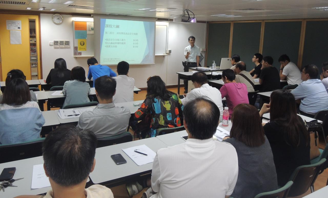 “食品卫生督导员课程”对象为在本澳从事餐饮业、酒店业、食品加工及制造业、手信业、食品零售业或团体供膳食场所的在职人员,并须获得雇主或所属公司推荐。整个课程为九小时,分三日进行,内容涵盖《食品安全法》、食品溯源及保存纪录机制、食品安全及个人卫生、食品经营场所的设备和规格、防止虫鼠与废物处理、清洁及消毒等。