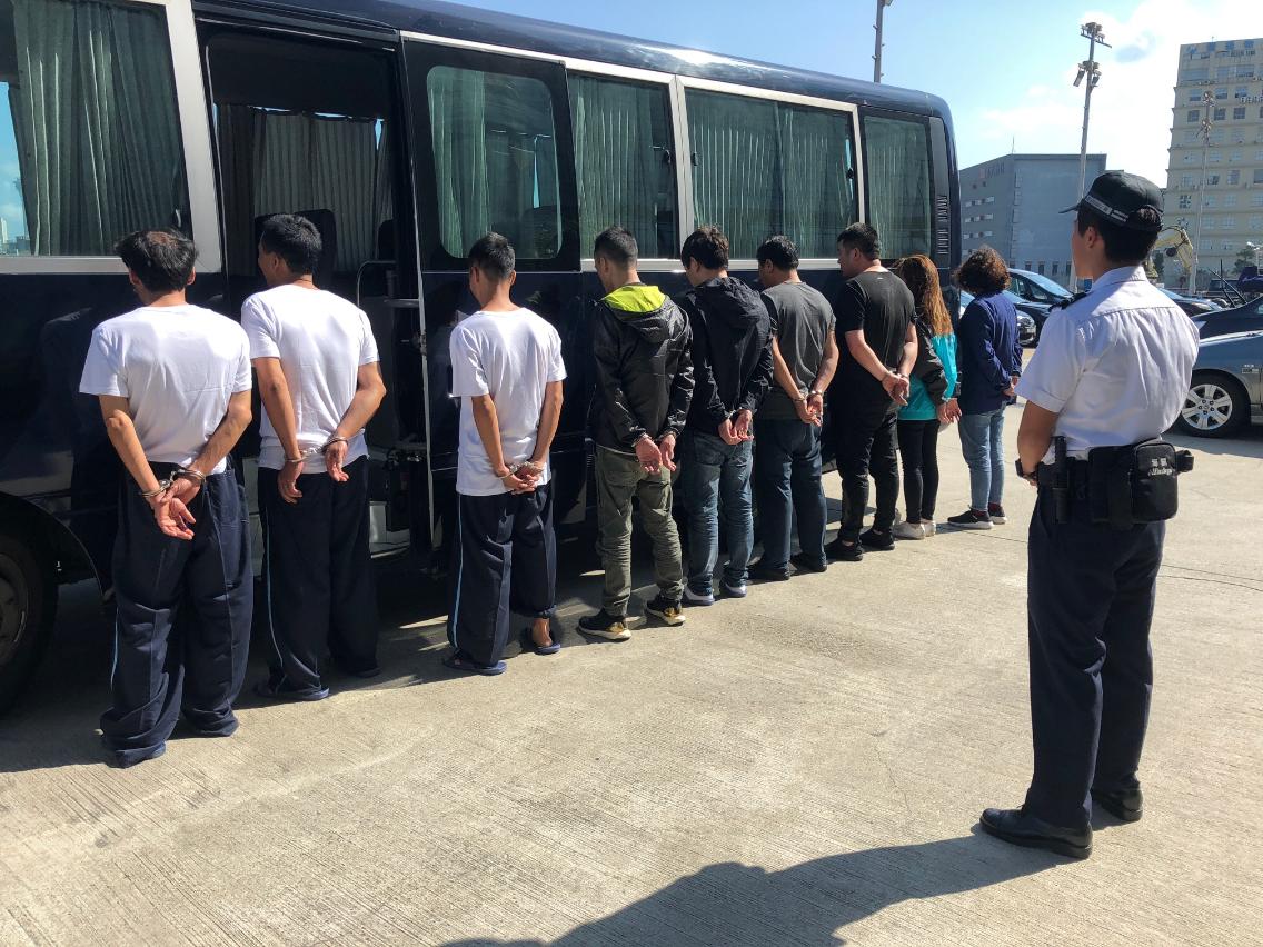 上述行动共拘捕8名内地人及1名香港人,年龄介乎28至56岁,当中4人非法出境、2人非法入境,至于3名协助偷渡的男子涉嫌触犯第6/2004号法律第14条(协助)及第15条(收留)所指之犯罪,已全数移交司法机关处理。