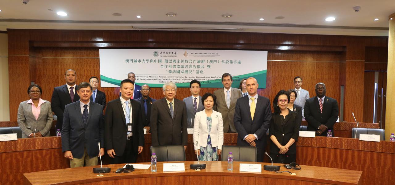 2018年5月25日,中国-葡语国家经贸合作论坛(澳门)常设秘书处徐迎真秘书长与澳门城市大学张曙光校长签署合作框架协议。双方共同举办“葡语国家概况”讲座,葡语国家派驻代表分别向在座师生介绍其国家概况。