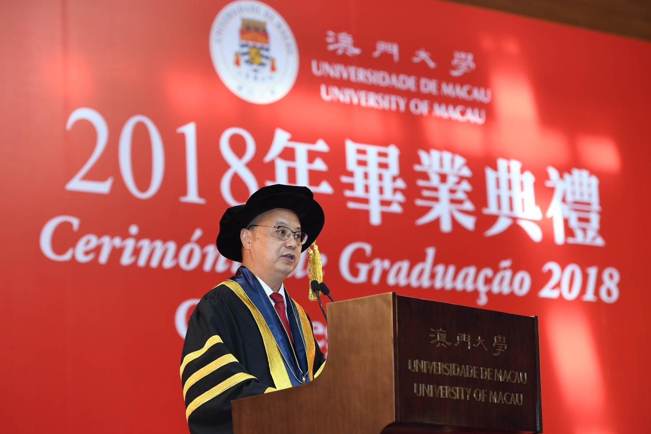 宋永华致辞时表示,澳大经过37年的发展,已形成以专业、通识、研习及社群教育为主的全人教育模式,创建了学院与书院相辅相成的协同育人体系。其中住宿式书院系统更是澳大本科生教育的最大特色,是美国教育家约翰˙杜威 (John Dewey) 提出“教育即生活、生活即教育”理念的澳大实践。他深信学生四年来在书院生活过的所有痕迹都不会消失,会潜移默化地为学生的未来带来积极的影响,这正是澳大创建住宿式书院的核心价值。他还勉励学生牢记校训,志存高远,积极发挥自身所长,用创新成就梦想,用毅力达成目标,勇于尝试,敢闯新路,为澳门、为袓国以至全球的发展注入更多新思维新动力。