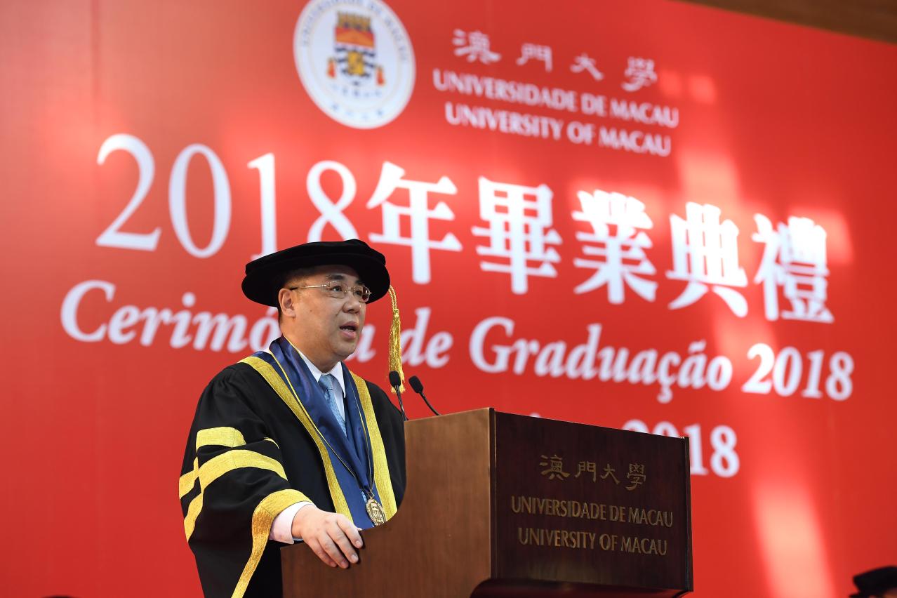澳门大学于今(26)日举行毕业典礼,行政长官兼澳大校监崔世安表示,高等教育是整体教育事业的重要组成部份,是人才储备的重要平台,特区政府继续支持澳大积极改革课程体制,努力建构完备的书院体系,深入探索全人教育的理念和实践。
