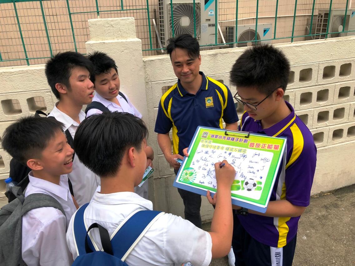 司警局特别制作了“做个守法青年,睇波不赌波”签名纸板,由灭罪小先锋邀请青少年签名及合照,并鼓励他们将防罪宣传照片上载至个人社交网络平台,向朋辈传达防罪信息;同场邀请青少年在司警局关注少年组的“脸书”专页按赞,以便他们随时接收到最新的防罪信息。活动吸引了不少青少年参与,现场反应热烈。
