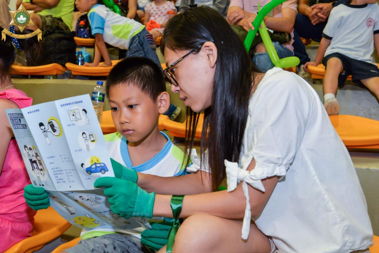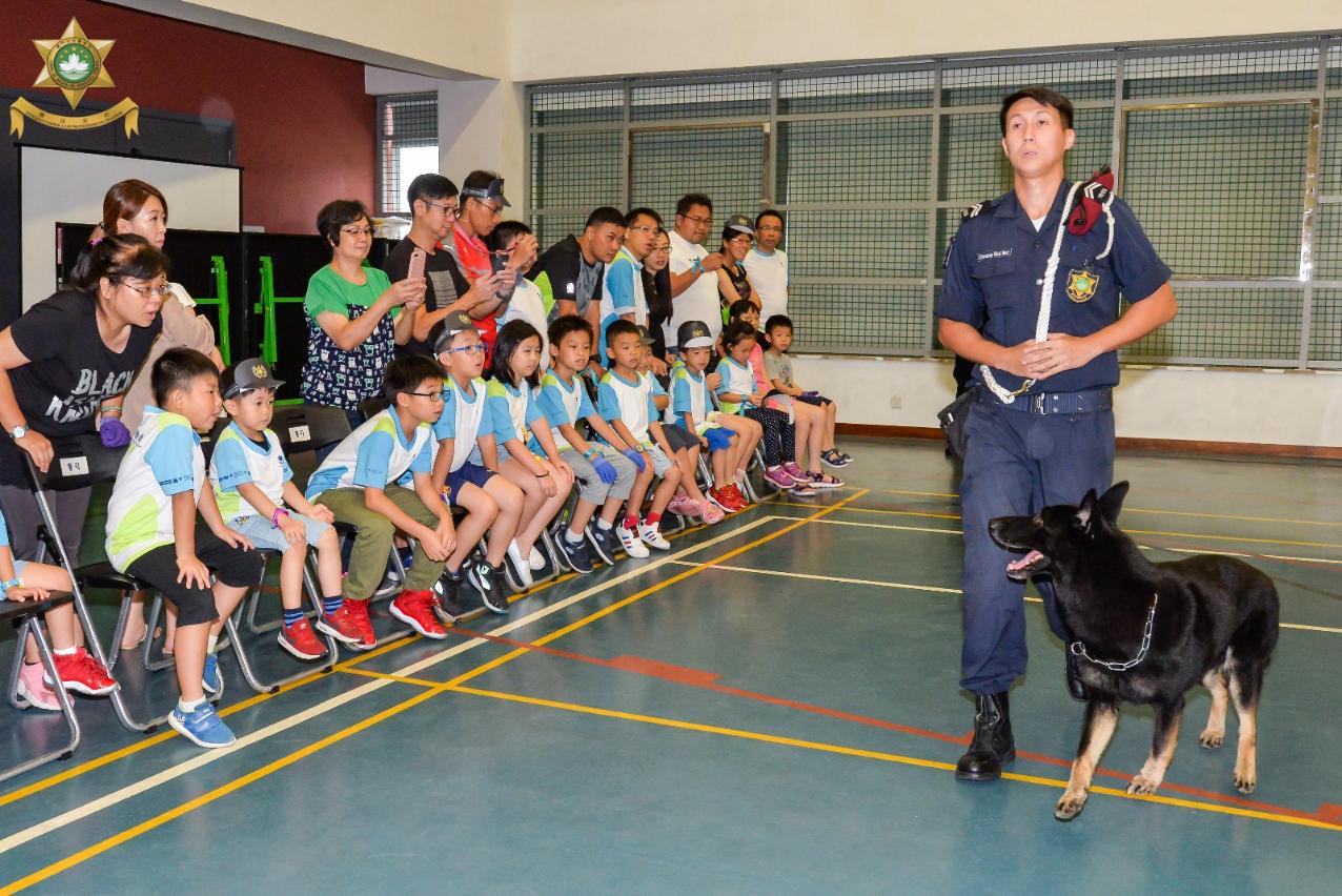 在“迎新聚旧竞技会”当天,治安警察局为新旧小警苗准备了多项有益身心的团队竞技游戏以及精彩丰富的体验活动,包括小警车驾驶、警犬教学、装备展览及试穿等,现场气氛热烈。此外,踏入台风季节,活动亦加入了“防灾知识合多啲”的教学环节,从提早准备好用水、粮食、应急药物、生活用品,到灾害发生时应如何遵照民防架构发出的指示和呼吁,尽早远离低洼地区,及时疏散到安全的地方暂避,保障一家大小的安全程序,都一一透过互动和展示的方式,向各位小警苗和同事们进行介绍,整个教学寓学习于游戏,务求令防灾的意识从小渗透到参与者的脑海里,达到防灾从小警苗开始做起。
