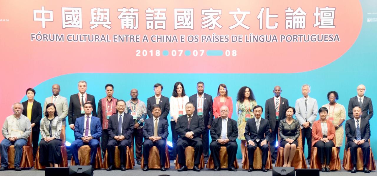 “中国与葡语国家文化论坛”今日(七月七日)上午十时在澳门旅游塔会展娱乐中心隆重举行。澳门特别行政区行政长官崔世安、中央人民政府驻澳门特别行政区联络办公室主任郑晓松、葡萄牙文化部部长文德思、外交部驻澳门特别行政区特派员公署特派员叶大波、社会文化司司长谭俊荣、葡萄牙驻澳门及香港总领事馆总领事薛雷诺、中葡论坛(澳门)常设秘书处秘书长徐迎真、文化局局长穆欣欣、旅游局局长文绮华、葡萄牙书籍、文件馆及图书馆总局局长拉萨尔达及国家文化和旅游部部长代表李健钢等主礼开幕。