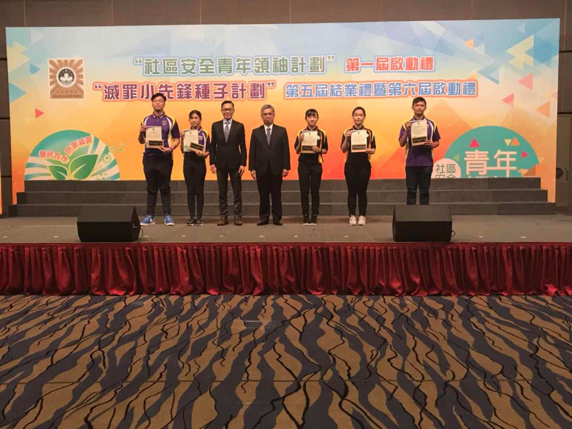 仪式上,首先进行第五届“灭罪小先锋种子计划”结业礼,共有102位学员顺利完成课程并达标,获颁发结业证书,其中30位表现优秀的学员更获嘉许,同时获委任为小队长,协助带领第六届的学员接受培训。另外,13位第四届灭罪小先锋小队长及5位历届灭罪小先锋优秀领袖学员,积极协助带领第五届学员进行培训,以及参与司警局举办的防罪宣传活动,获颁授优秀领袖奖状和杰出表现奖状。