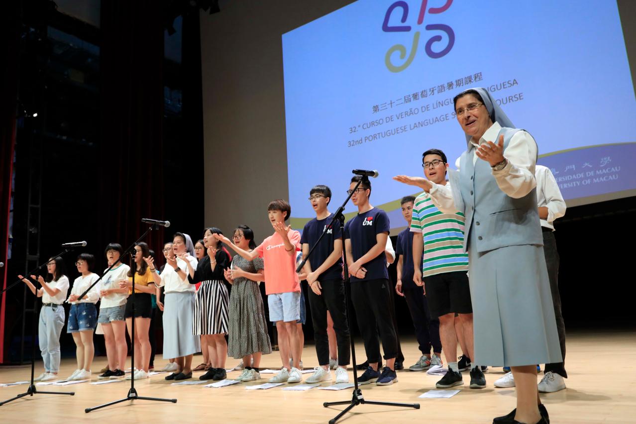 闭幕礼上,一众学员不仅以葡语进行演讲,更穿上葡萄牙不同地区的民族服饰,表演葡萄牙土风舞和音乐合唱,一展学习成果。专程从美国加州回澳修读课程的土生葡人Jessica Xavier 表示,每天连续四小时葡语学习令她获益良多,开始掌握日常生活的简单沟通,有助她更好地融入土生葡人社区,她很享受在澳大学习葡语的氛围。另一位学员、来自韩国外国语大学的Hector Sunghtun Park也对连续三周的密集式葡语训练甚为满意,认为澳大营造了一个良好的语境,让他以葡语与不同国家的学员交流,大大改善葡语会话技巧,效果理想,有助他达到他朝以流畅葡文与葡萄牙足球名将朗拿度访问的梦想。