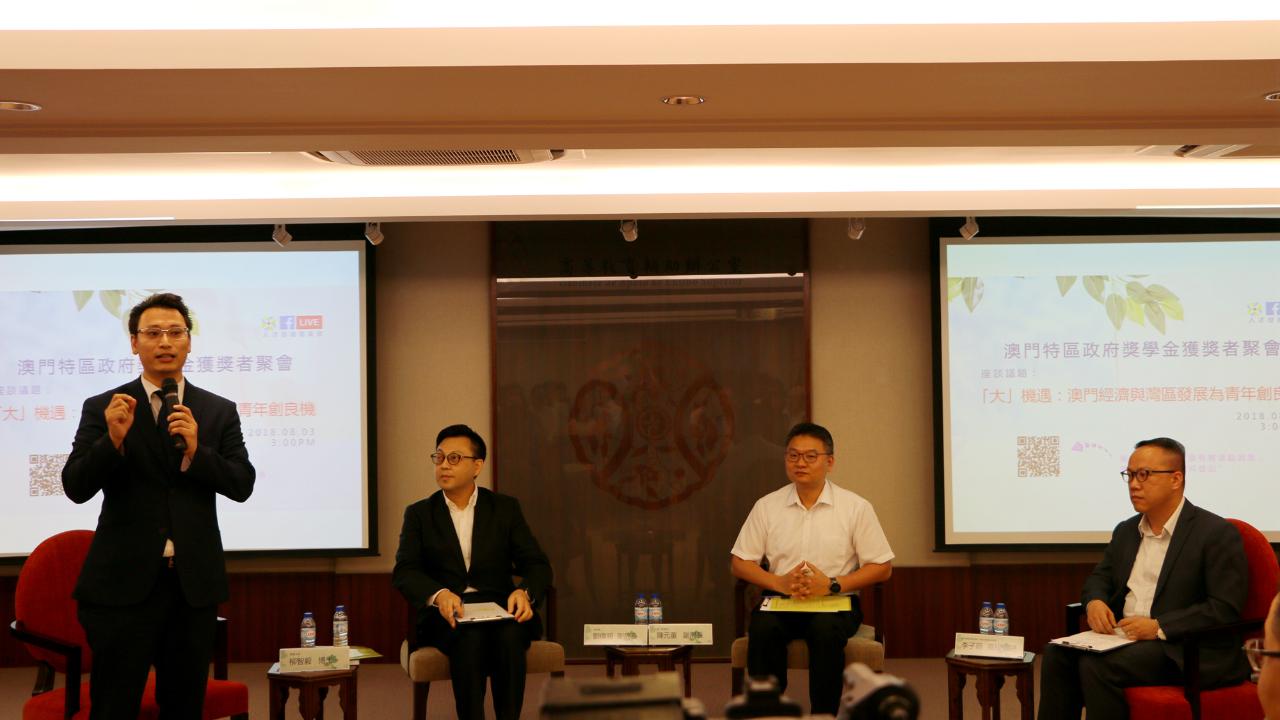 人才发展委员会于日前假高等教育辅助办公室会议室举行“澳门特区政府奖学金获奖者聚会”,主题为“ ‘大’机遇:澳门经济与湾区发展为青年创良机”,与青年畅谈澳门人才参与大湾区发展的机遇,座谈会整体气氛良好,交流顺畅,聚会让各参与方有深入沟通和互动,更好地搭建凝聚澳门人才的平台,当日赴会奖学金获奖者近50人,曾获发不同政府部门及机构的奖学金,包括:澳门基金会、研究生资助发放技术委员会、教青局、文化局、人才发展委员会。