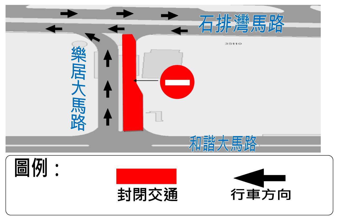 配合运输基建办公室开挖探井,8月13日(周一)至25日(周六),介乎石排湾马路与和谐大马路之间的一段乐居大马路(往乐群楼方向)封闭交通;8月20日(周一)至31日(周五),近和谐大马路的一段乐居大马路(往石排湾马路方向)实施有限度通车。交通事务局呼吁驾驶者留意。