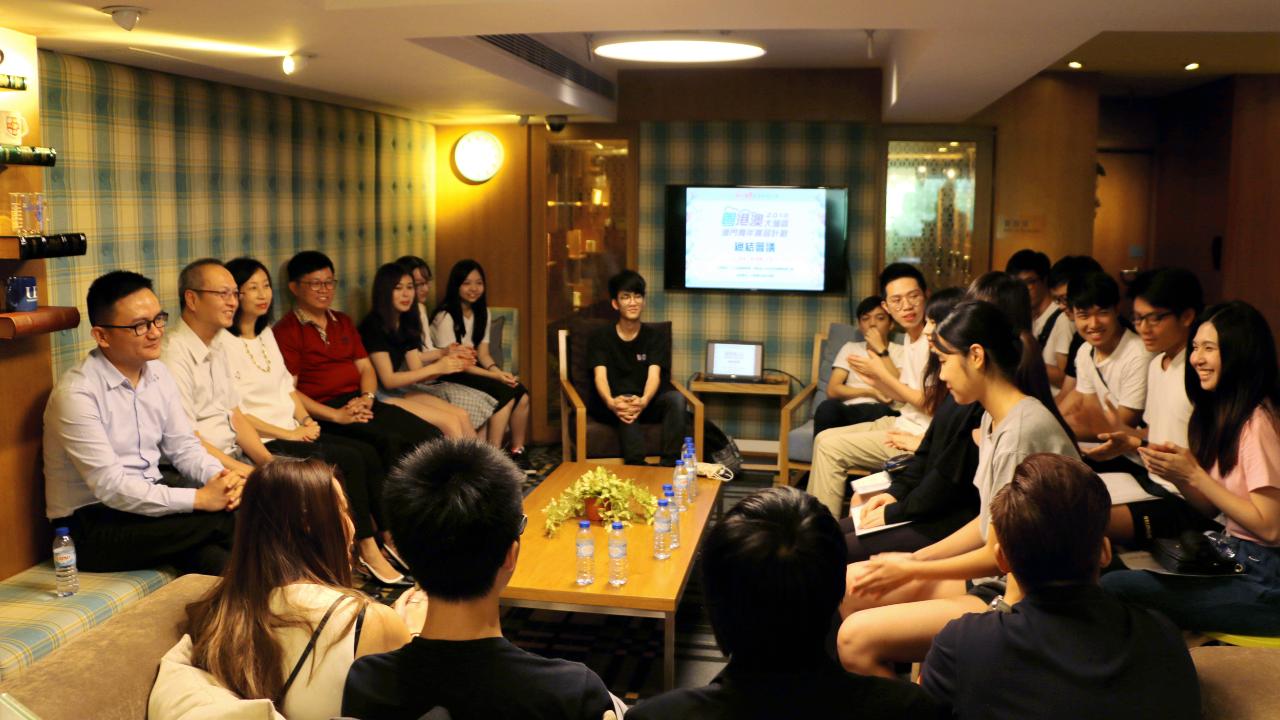 人才发展委员会与广东省人民政府港澳事务办公室联合推出“粤港澳大湾区澳门青年实习计划”(下称“实习计划”),推动本地青年融入大湾区发展。22名本澳实习人员于7月初出发,前往广州企业进行为期一个月的实习。是日,多位实习学生齐聚大学生中心参与人才委组织的总结会议,就个人此行的体验发表意见、交流心得,人才委黄竹君委员、郑洪光委员及苏朝晖秘书长,在承办机构中华青年进步协会张森华理事长的陪同下出席交流活动。