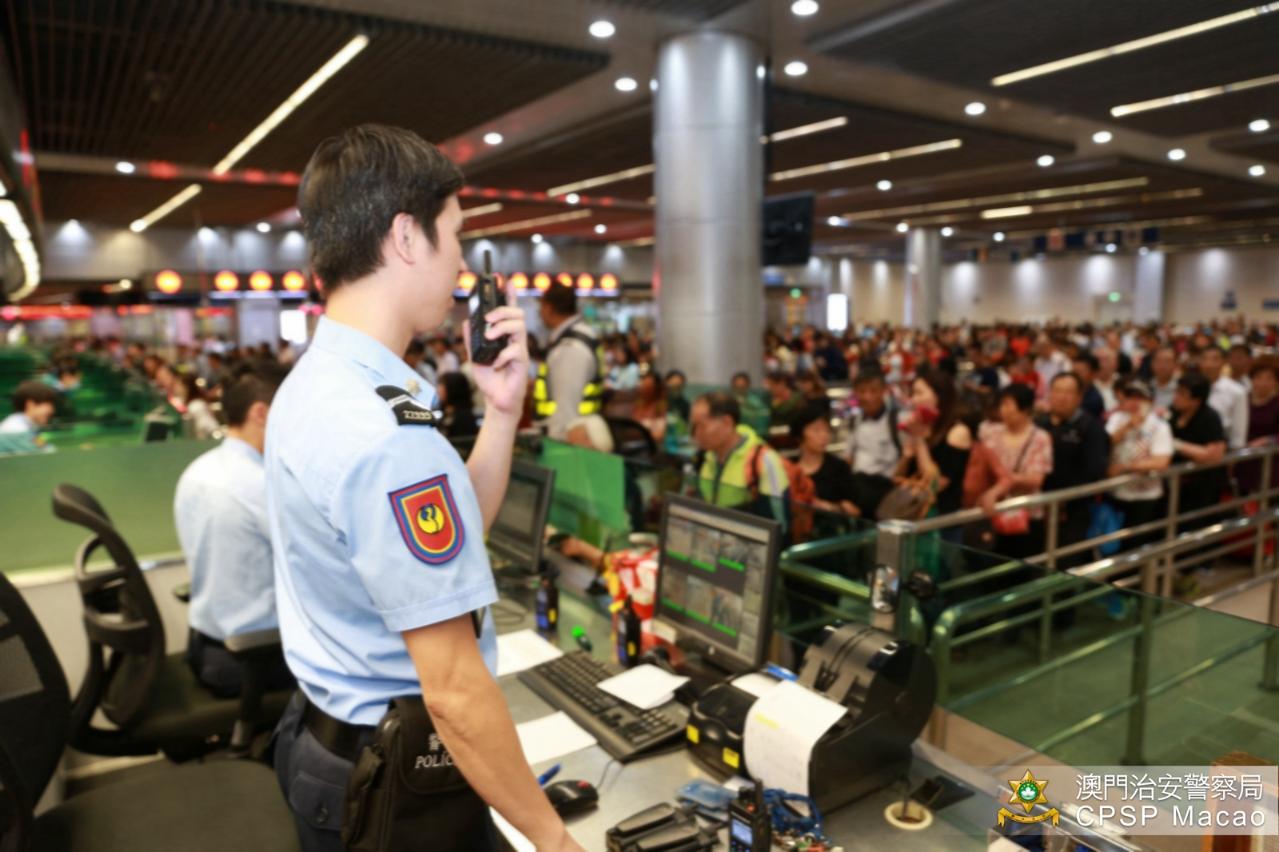 治安警察局领导指示各边境站主管密切关注出入境人流状况,并与对口部门保持紧密沟通,同时实施多项措施,加开检查柜台疏导人流,增派保安人员协助维持出入境大堂及车道的秩序,以有效分流旅客;关闸广场离境大堂入口处亦增派人员执行疏导措施,引导旅客安全有序进入。另外,于关闸及各口岸外围一如既往作好部署,派驻警员指挥交通以及监察人潮情况,以确保通关秩序,保障市民及游客的安全。