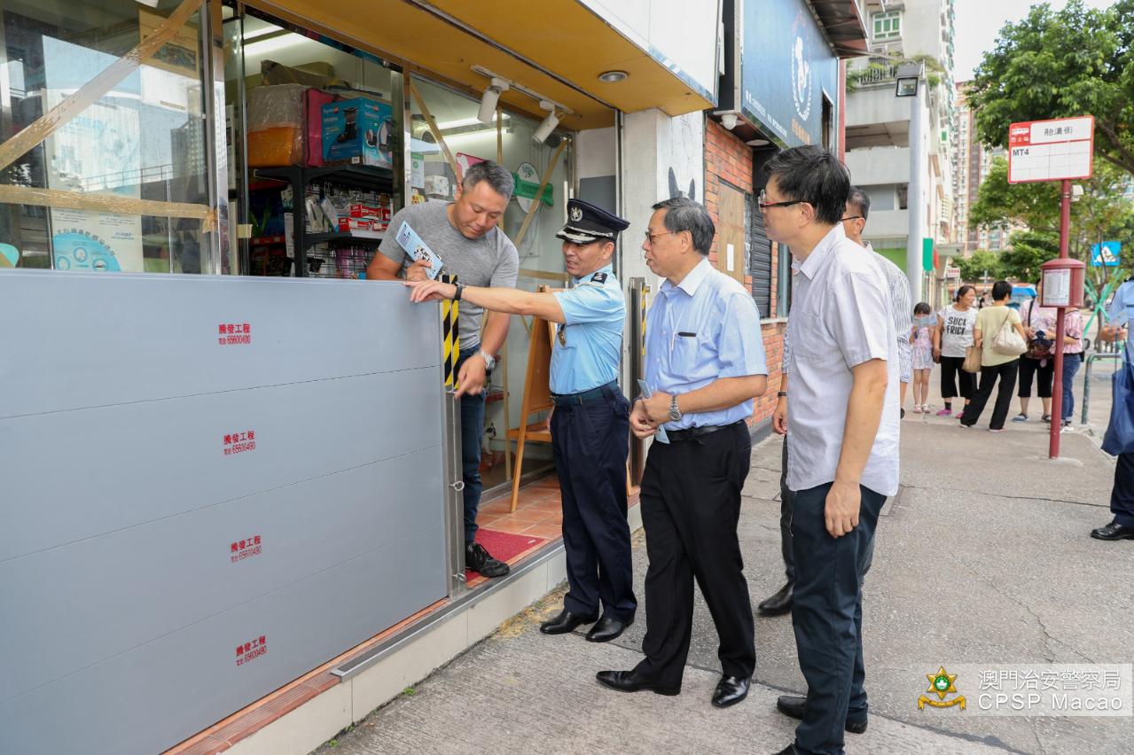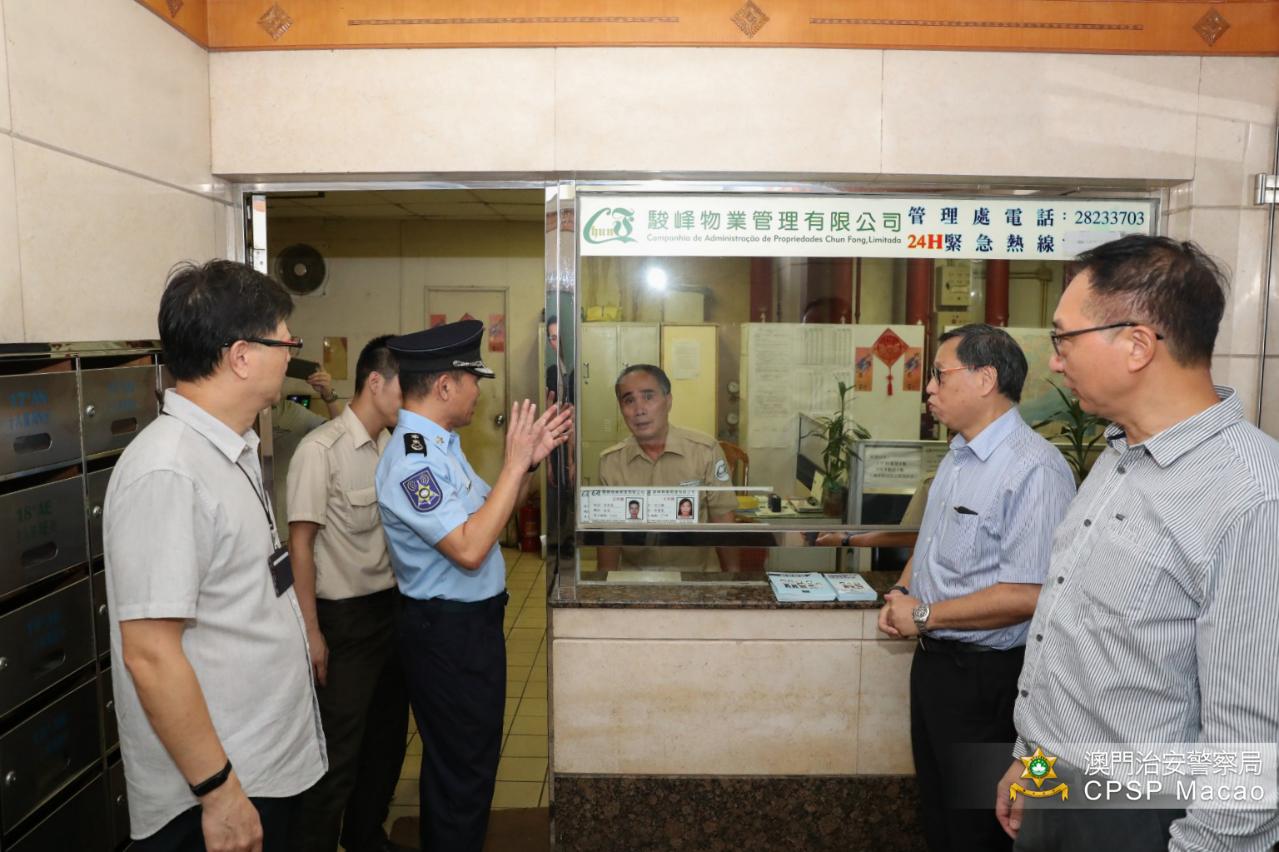 治安警察局人员与澳门物业管理业商会代表先后就台风前后的预防、应对及善后工作等交换意见,物管会表示已对大厦管理人员作出指引,强台风来临时,大厦管理处负责协调及指挥所需的防护工作,于大厦范围内水浸风险高的位置围上沙包或安装挡水板,加强检查地下机电设施房及地库停车场内预先放置的抽水装置,并确保有足够人手当值。