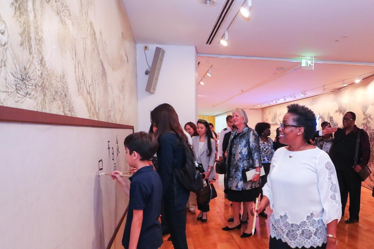 领事团在文化局局长穆欣欣等人的陪同下,首先前往澳门艺术博物馆参观“渔山春色──吴历逝世三百周年书画特展”。吴历是清初着名画家,康熙年间曾随比利时籍耶稣会士柏应理来澳,以画跋和诗集《三巴集》记下在濠镜的生活和感受。展览展出吴历不同时期的书画作品,以及其师友书画作品共84件(套),此为吴历的首个大型个展,近半数展品更是首次公开展出,较全面地展示吴氏的艺术和笔墨面貌。适逢今年为吴历逝世300周年,展览让领事们瞭解清代绘画最高水平的一角,感受灿烂的中华文化魅力。
