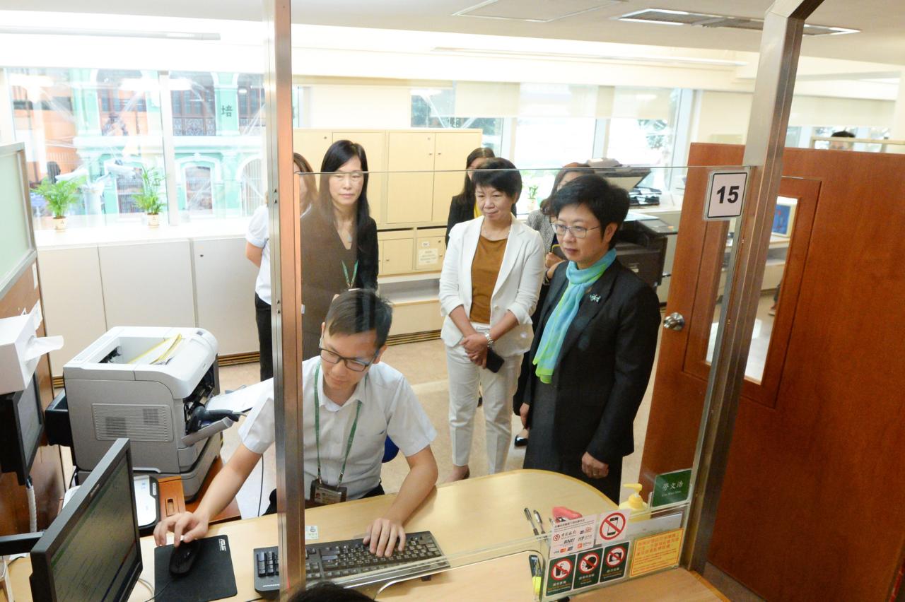 陪同视察的人员还有行政法务司司长办公室主任丘曼玲、身份证明局局长欧阳瑜、副局长罗翩卿及黄宝莹。