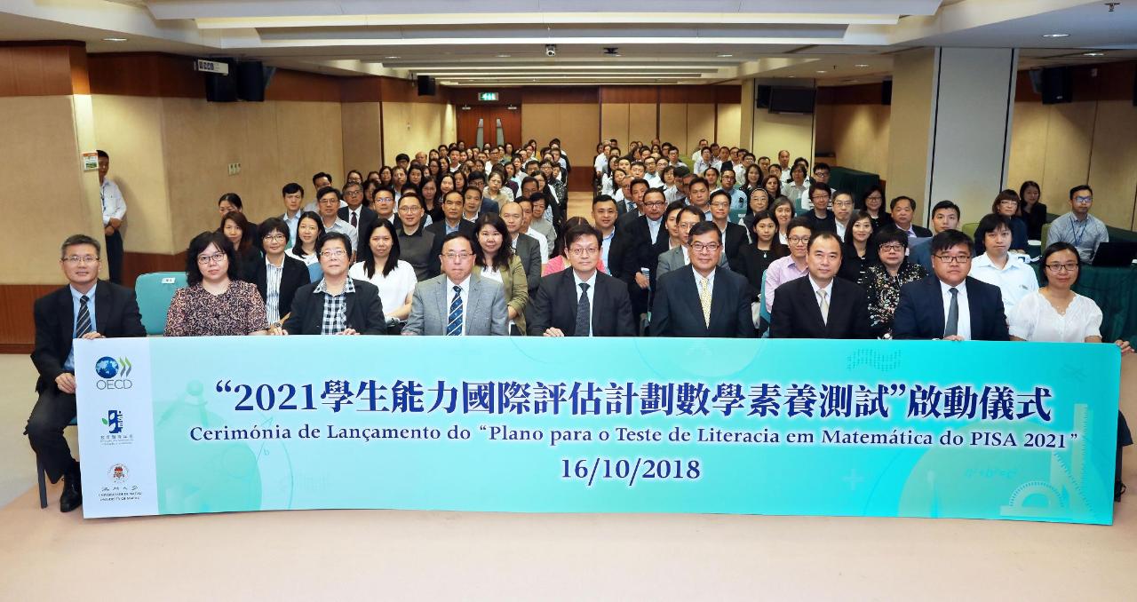 教育暨青年局于10月16日在仲尼堂隆重举行了“PISA 2021数学素养测试”的启动仪式。教青局于2003年首次参加学生能力国际评估计划(PISA),本年已是第七次参加有关计划。启动仪式由中国澳门PISA指导委员会成员(PGB),教青局局长老柏生主持,老柏生及澳门大学学术副校长倪明选,以及中国澳门PISA研究计划经理(NPM)、澳门大学教育学院教育测验与评核研究中心主任张国祥分别在启动仪式上作专题讲话。共有超过170名来自澳门大学PISA中心、教青局及学校的人员参加。