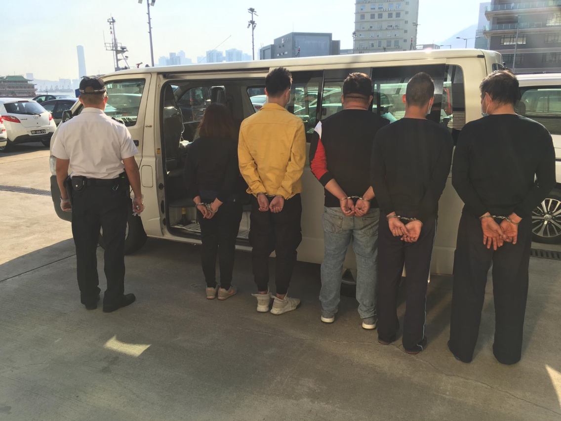 两案合共有五名涉案人士被扣查,年龄介乎26至60岁,当中一名男子持有伪证,涉嫌触犯第6/2004号法律第18条‘伪造文件’罪;一名男子疑为蛇头,涉嫌触犯同一法律第14条‘协助’罪;一名男子为非法再入境者,涉嫌触犯同一法律第21条‘非法再入境’罪。上述三人连同其余两名非法出入境人士一并移送司法机关处理。经审理后,其中疑为蛇头之男子被羁押候审,其余人士则被移送治安警察局处理。