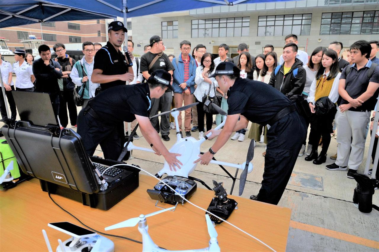 在交流活动环节后,海关安排人员向出席青年介绍最新购置的无人机装备,瞭解其在险要地势下如何发挥监察及救援等作用;海关船队亦在青洲对开海面安排出席者观看一场反偷渡演练,派出快艇及水上摩托车模拟追截及拯救偷渡人士。黄有力其后更带领一众青年,登上A级海关轮出海,进一步了解各种新型设备如何应用于实际工作,加深对海域管理工作的了解。