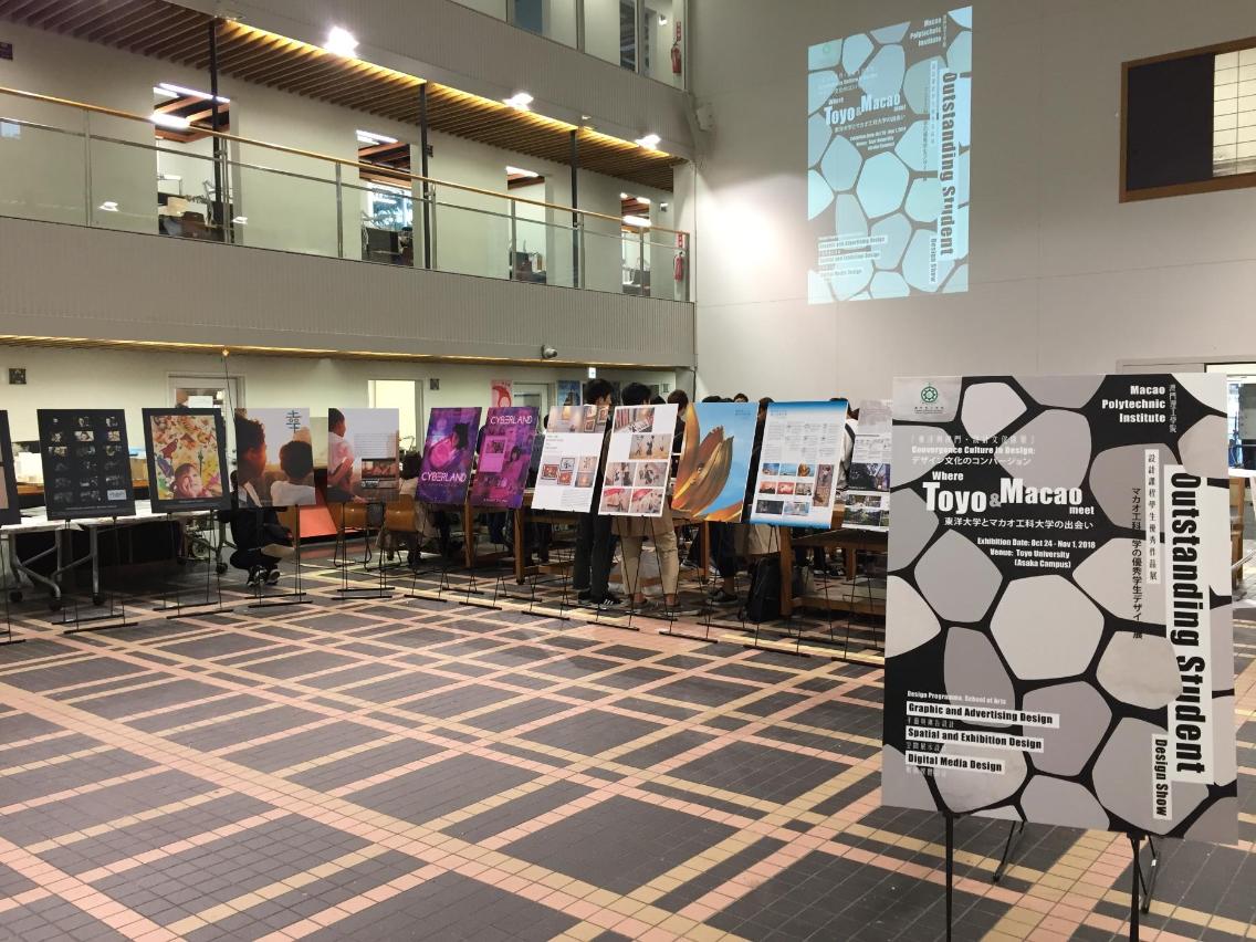 这次展览,是理工设计学生作品首次在日本展出,旨在推动两校设计文化创意交流,精选展出了理工艺校设计课程十二位学生最新优秀设计毕业作品,如空间及展示设计、平面及广告设计、数码媒体设计,以及动漫造型、商业摄影等类别作品。题材及内容丰富,当中有融合中葡文化以现代皮影玩偶说故事、以澳门场景描绘魔幻现实视觉、以九澳村打造悠闲空间设计、以澳门公教中心再造绿色素食生活空间、反映澳门青年人追梦成长挣扎、探讨虚拟与现实世界的社交关系等。这些设计作品代表新一代年青设计学生对澳门文化独有的视野与特色。东洋大学柏树良表示,藉此展览可见澳门理工学院学生设计题材的多元性,以及对视觉传达、空间再造、数码媒体的运用都具有相当程度掌握。期望将来两间院校有更多的跨文化学术交流,让两地学生针对共同设计议题,彼此文化激荡创意,以设计思维寻求创新方案,带动社会设计与文化创意产业发展。