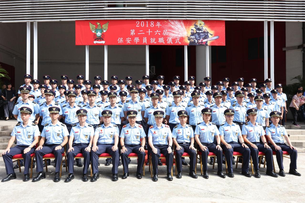 消防局于2018年11月6日,在消防局消防学校举行了第二十六届保安学员培训课程消防学员就职仪式,共有63名消防学员完成培训课程,正式就职成为消防员,仪式由消防局局长 梁毓森 消防总监担任主礼嘉宾。