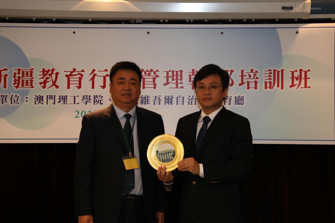 严肇基致词时表示,在澳门特别行政区政府社会文化司和新疆维吾尔族自治区教育厅支持下,理工学院自○四年起开展与新疆多元合作,包括有新疆教育部门干部培训、高中毕业生来澳门就读学位课程、英语师资培训、合办学术研讨会、提升教与学质量的合作、高校科研学术合作及创建两地教育合作可持续发展的平台等方面。目前共有来自新疆的教育干部、大学及基础教育教师、专家、学者及学生共二千五百多人参与了合作项目。其中新疆教育行政管理干部培训班已成功开办二十五个培训班,共计总学员五百零三人。今期理工迎来第二十六班的学员,授课内容除相关理论学习,还将安排讲座、与专业团体交流座谈、参访及文化考察活动,增进学员以多角度对澳门教育、澳门文化、教育管理等方面的学习和理解。