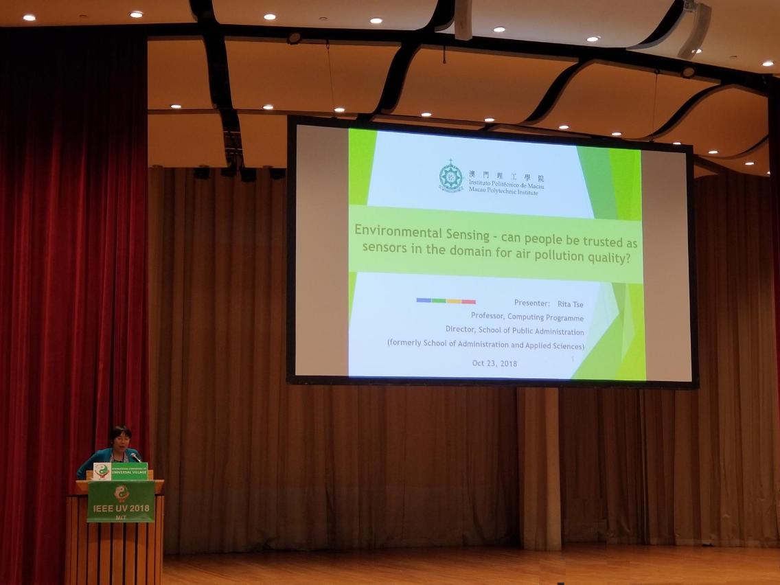 由国际电机电子工程师学会 (IEEE, Institute of Electrical and Electronics Engineers) 及美国麻省理工学院共同合办的第四届智慧地球(Universal Village)国际学术会议,日前(10月21日至24日)于美国波士顿麻省理工学院举办,澳门理工学院电脑学课程谢丹婵教授应邀出席并以“环境感知──人类是否可作为可信任的空气污染质量领域的传感器?” 作主题演讲,发表研究成果。