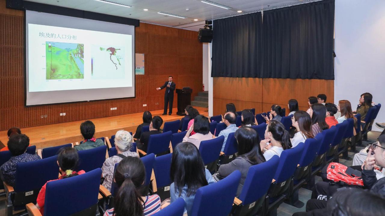 由文化局主办、澳门科技大学社会和文化研究所协办的2018年度“博闻新声 民心相通——一带一路沿线国家和地区文化系列专题讲座”第七场已于日前(11月10日)圆满举行,讲座主题为“埃及:金字塔、棉花与萨拉丁雄鹰”,由北京大学外国语学院阿拉伯语系主任林丰民教授主讲,向听众展示一个真实、五彩缤纷而又充满奇幻色彩的埃及。