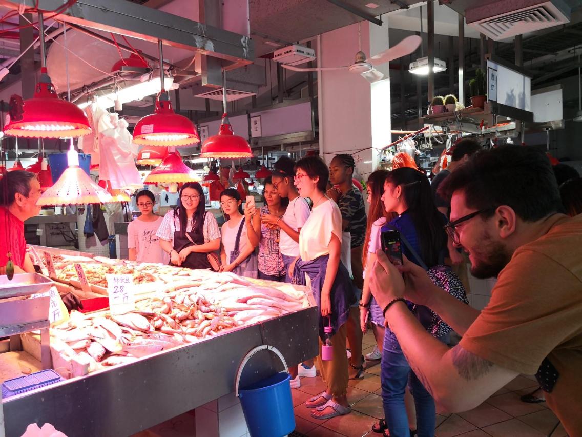 国际生实地走访参观了被列入澳门文物名录的红街市、特色美食摊檔众多的下环街市,以及今年全新启用,以海鲜闻名的沙梨头水上街市。国际生对街市的各式生鲜摊檔及特殊的斤两计重方式大感兴趣,一名巴西国际生表示目睹现宰的鱼后终于认识到中国人对“新鲜”的要求及执着。街市周边如义字街、生果街、三盏灯等特色街道也让国际生体验了澳门本地人的日常活动和社会的和谐景象。
