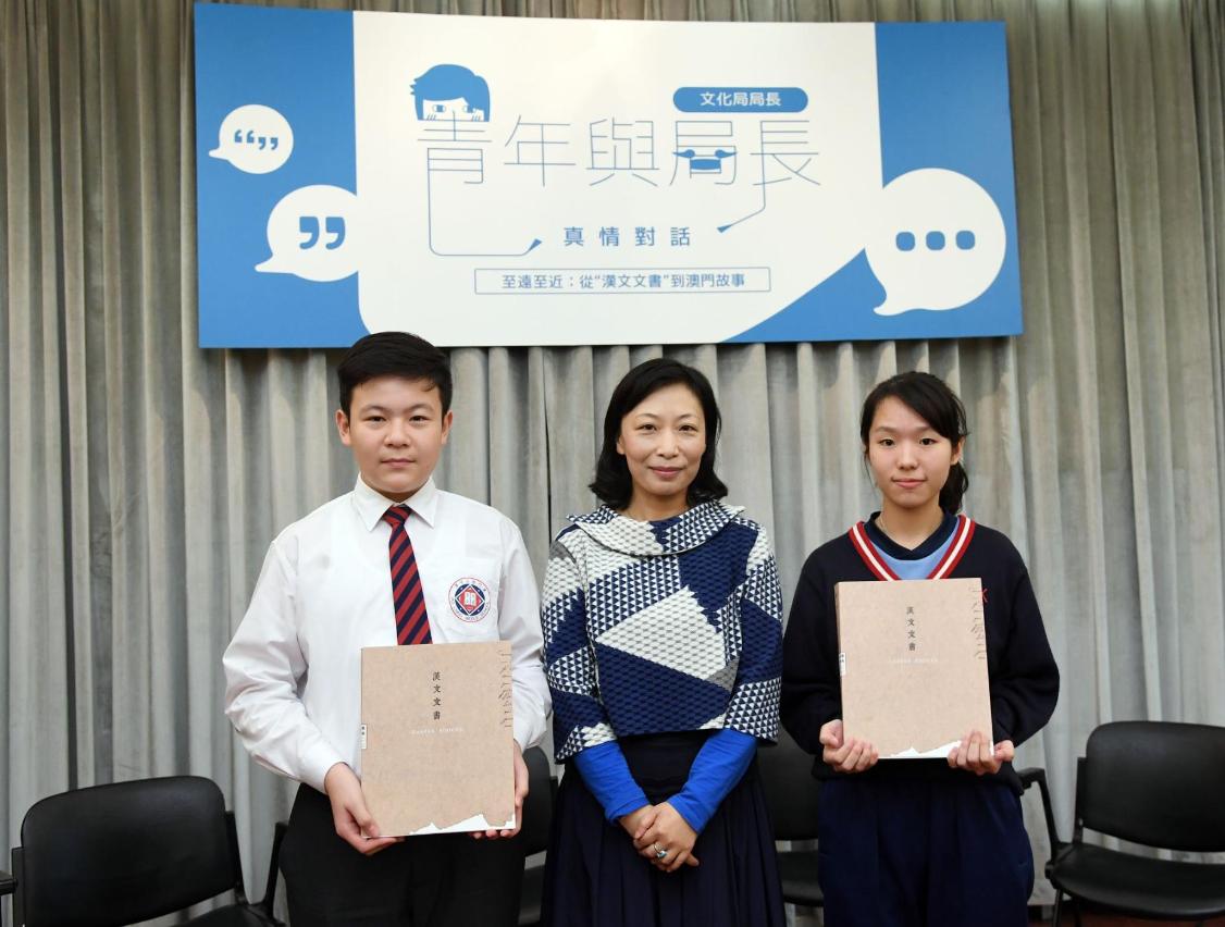 为促进大众对特区政府文化领域工作的瞭解,加强青年人群对本澳历史文化的认识,文化局12月1日在澳门檔案馆举办“青年与文化局局长真情对话"活动,以“至远至近:从汉文文书到澳门故事”为主题,与30多名来自培正中学和蔡高中学的师生进行交流互动。