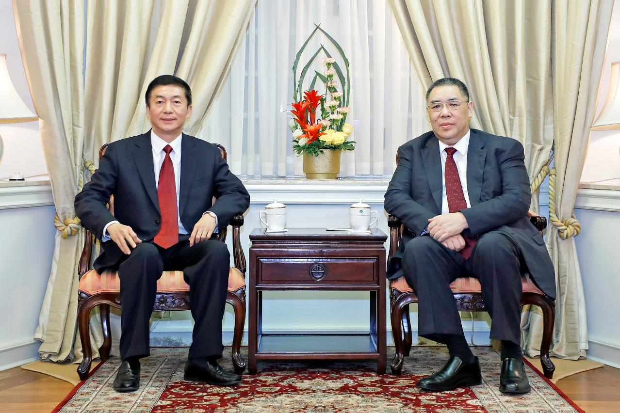 行政长官欢迎骆惠宁率团来澳访问考察。他表示,澳门特别行政区成立十九年来,在中央政府和各兄弟省区的关心支持下,特区政府以发展经济、改善民生为工作重点。澳门的发展,得到中央政府明确以构建“世界旅游休闲中心”和“中国与葡语国家商贸合作服务平台”为发展定位;近年中央批准和支持澳门参与和助力“一带一路”建设,以及参与粤港澳大湾区建设,让澳门融入发展国家的大局,并透过区域合作促进澳门经济多元化和可持续发展。他相信藉着投入国家的发展机遇,有利于澳门与山西省加强交流合作。