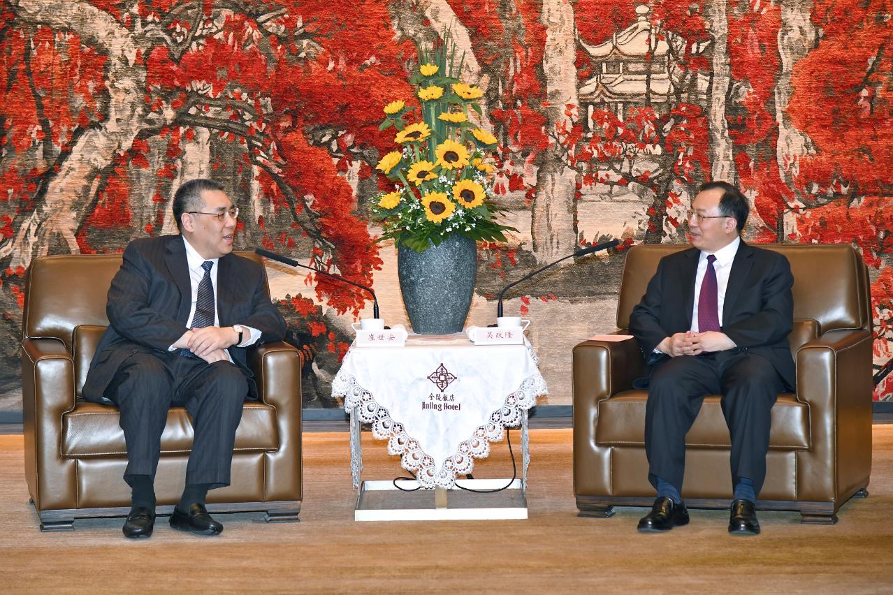 【新闻局】正在江苏省南京市的行政长官崔世安与江苏省省长吴政隆会面