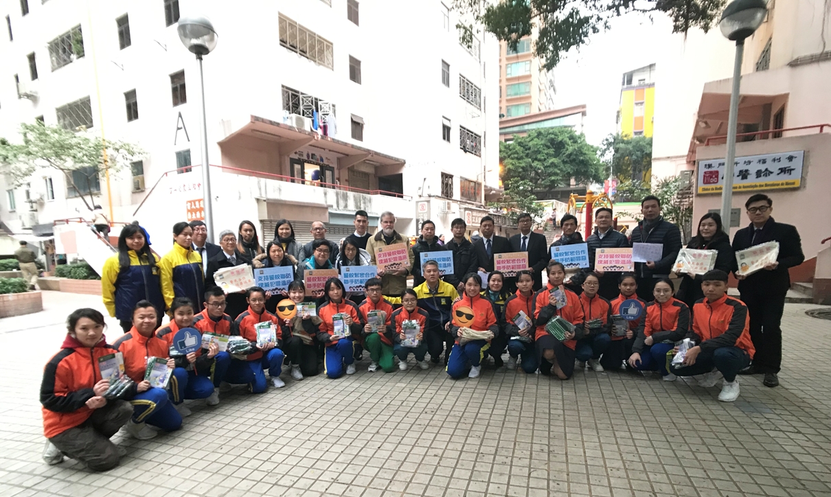 鉴于圣诞节及元旦长假期将至,青少年受到不法份子侵害的风险亦相对增加,故司警局关注少年组与澳门圣若瑟大学、劳工子弟学校、圣若瑟教区中学第五校、新华夜中学、化地玛圣母女子学校、菜农子弟学校、澳门坊众学校及青洲小学合作,并组织“灭罪小先锋”及“社区安全青年领袖”学员进行“警校联合防罪巡查”,率先在北区至青洲一带展开宣传,向青少年介绍年轻人容易遇到的犯罪类型及相关防范方法,特别叮嘱他们在节假日参与庆祝活动时,须提防毒品陷阱;亦提醒他们须警惕各种网络陷阱,尤其是网络交友陷阱,并向青少年派发防罪宣传单张及纪念品,冀透过他们的朋辈影响力,向更多青少年传递防罪守法讯息。