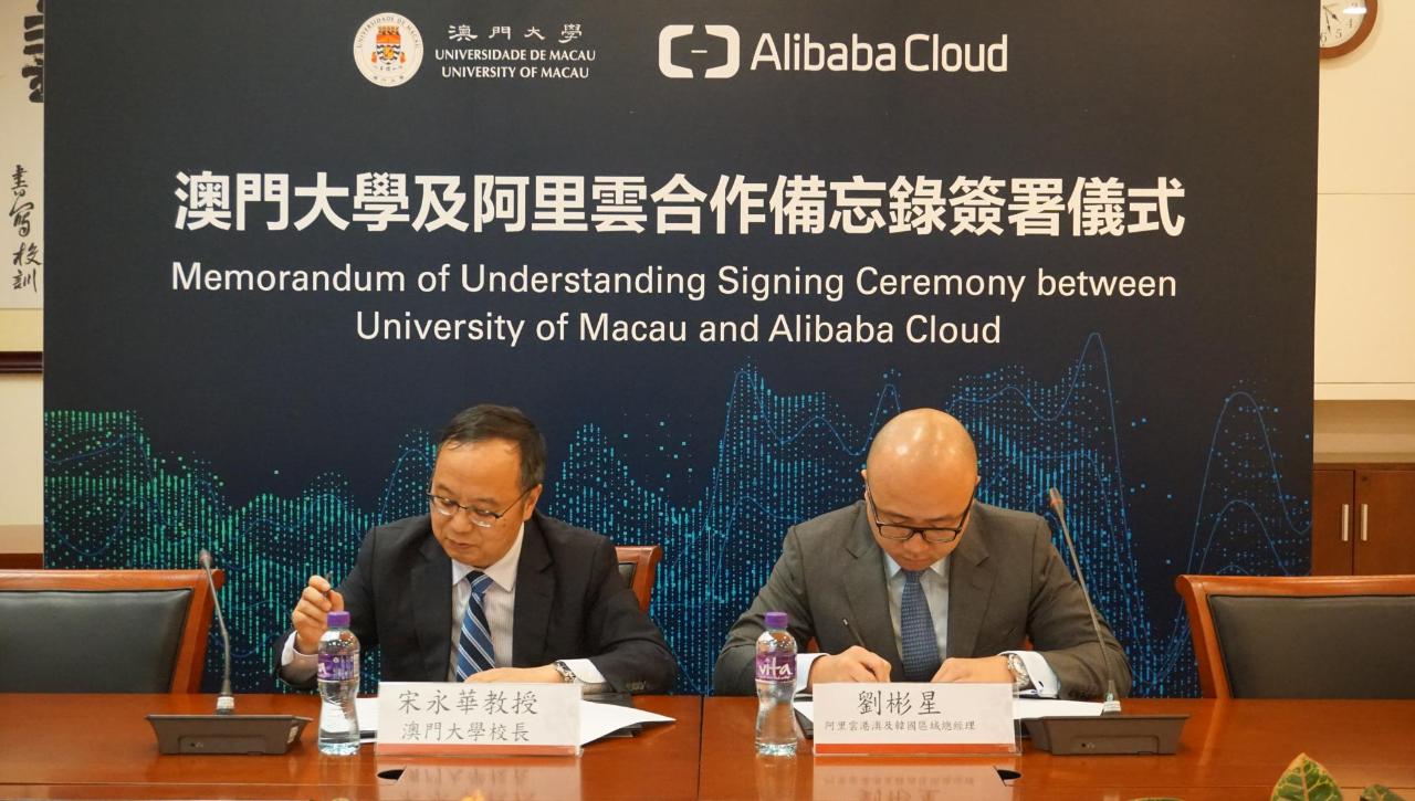 备忘录由澳大校长、智慧城市物联网国家重点实验室主任宋永华,以及阿里云香港、澳门及韩国区总经理刘彬星共同签署,双方将推出一系列数码化方案,并融合创新元素建立崭新及快捷的新兴技术,培育学生创新科技方面的能力和实际应用技术,加大投放资源应业界市场需求。澳大将于2019年9月新学年设理学硕士学位(数据科学)课程,由阿里云大学国际业务部派出导师指导学生。