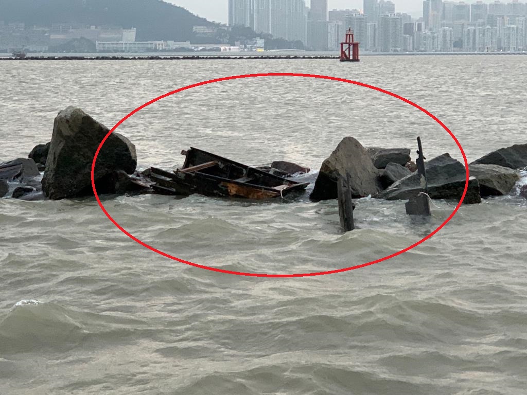 海事及水务局于下午16:50接报,指一艘舢舨在外港航道北堤3号灯桩附近海面沉没,船上两名中国籍男子逃生至外港航道北堤,海关派船只救起两人。由于沉没的舢舨已经解体,海事局已派船只把舢舨的部件暂时固定在外港航道北堤的外侧,以便在天气和海况条件较佳时跟进打捞和清理。事故对高速客船的航行没有构成影响。