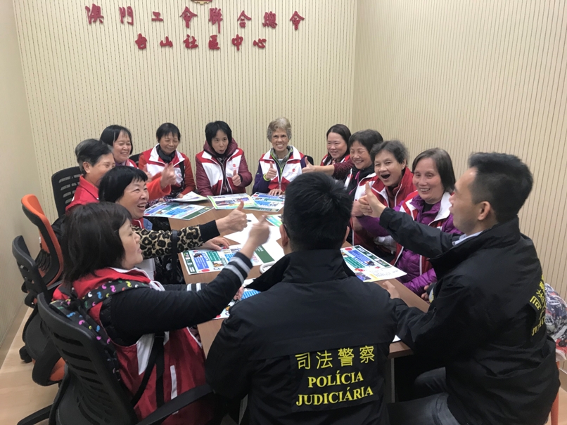 司法警察局持续走访社区进行冬防宣传活动,于1月22日派出刑事侦查人员前往台山区拜访区内团体,就该区的治安情况交流意见。此外,为加强居民的防罪意识,司警局人员还联同大厦防罪之友会员到区内向居民及商铺派发宣传单张,呼吁居民做好家居防盗措施,避免在家里存放大量现金及贵重财物,外出前紧记锁好门窗,并确保防盗设施正常操作;在公众地方,切记财不可露眼,切勿随处乱放手袋、手提电话及展露个人财物等;到人多挤迫地方,紧记保管好个人财物,应将财物置于身前视线范围内,勿让不法之徒有机可乘。