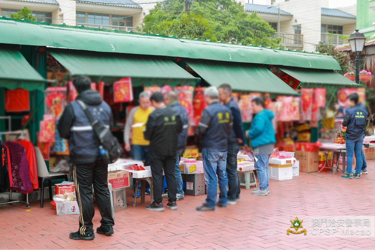 1月21日,治安警察局联同澳门海关及市政署进行打击非法入口、贮存及贩卖爆竹的联合稽查行动,巡查本澳各间售卖爆竹之店铺。是次行动共派出33人,巡查了48间店铺,截查58人(其中54人持有澳门居民身份证、4人持有外地雇员身份认别证),期间没有发现非法入口、贮存或贩卖爆竹的店铺,惟当中发现20间店铺占用公共地方摆卖货品,市政署人员对相关店铺作出票控。