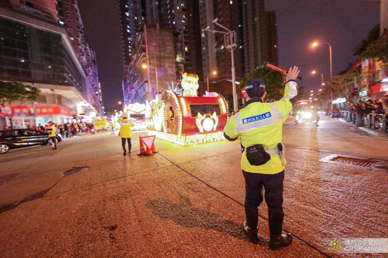 新春期间,市面人流畅旺,尤其是年初二至年初六,大批旅客前往中区的新马路及大三巴一带观光,由于人流较多,故治安警察局在新马路实施了临时疏导措施(包括封闭新马路部分行车道以扩阔行人道疏导人流,以及新马路的车辆不可左转入龙嵩正街等)疏导人流;同一期间一连五天,在大三巴街启动了五次单向人潮管制措施;治安警察局亦加派警员在道路交汇点引导和指示行人,市民及旅客均积极配合现场警方的指示有序行进,整体秩序良好。