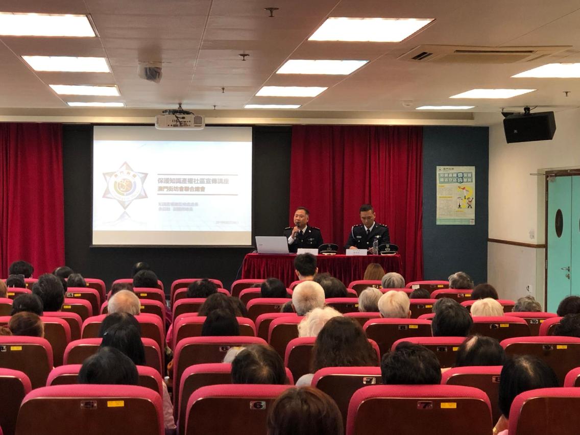 讲座于街坊总会颐骏中心举行,街坊总会副理事长周宜心、副理事长李惠萍及约120名成员出席。讲座上,海关知识产权厅监检处处长余益铨、监检处行动主任郑华锦介绍澳门海关在知识产权方面的执法情况、相关的法律规定,并解答有关知识产权方面的问题。