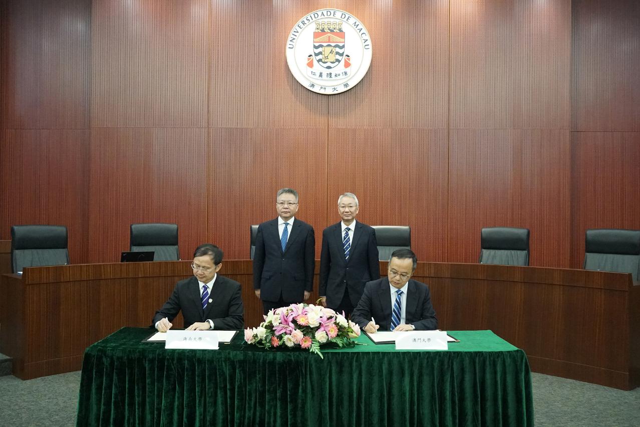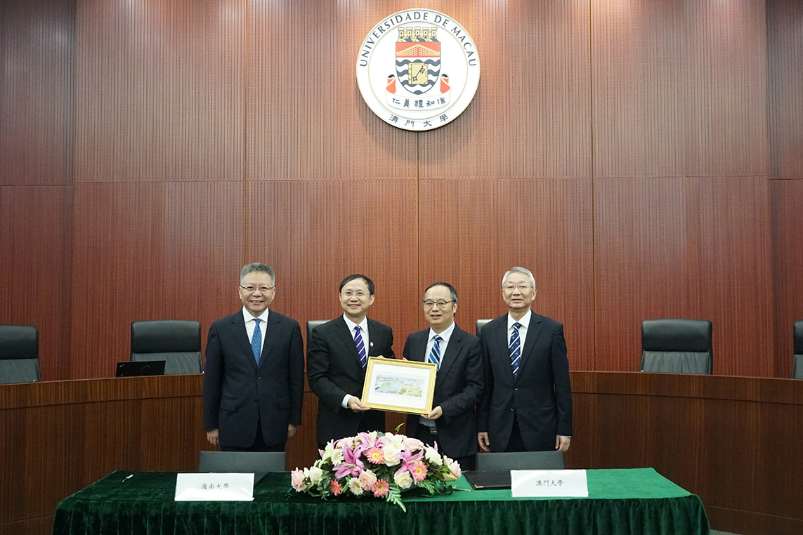 海南省省长沈晓明率代表团访问澳门大学,获澳大校董会主席林金城、校长宋永华、中华医药研究院院长王一涛等接待。双方签署合作备忘录,进一步推动澳大与海南大学的学术交流与产学研合作,推进两地高端人才的培养,并就深化琼澳两地交流、落实两地高校合作等议题进行深入探讨。
