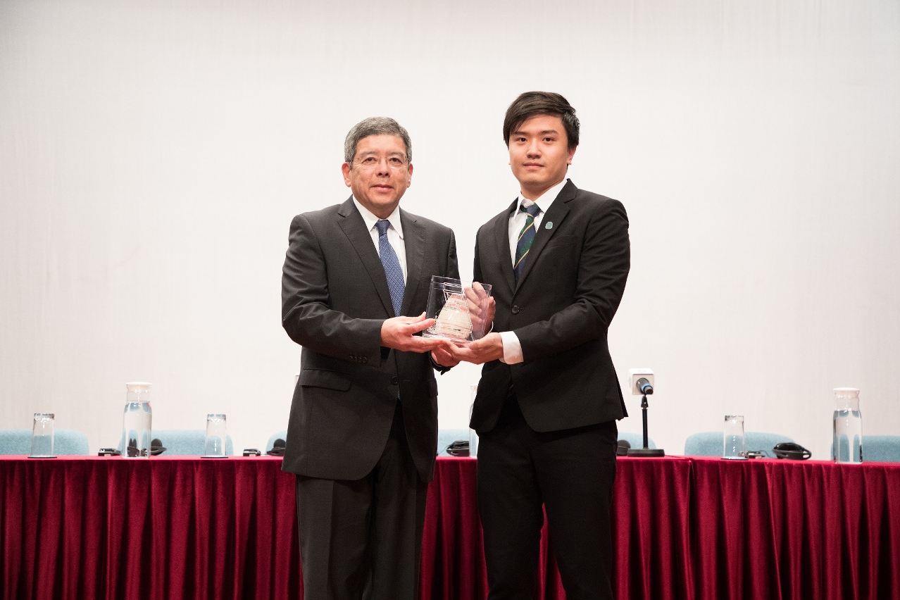 • 澳门理工学院学生会理事长汪宗隽向运输工务司司长罗立文致送纪念品;