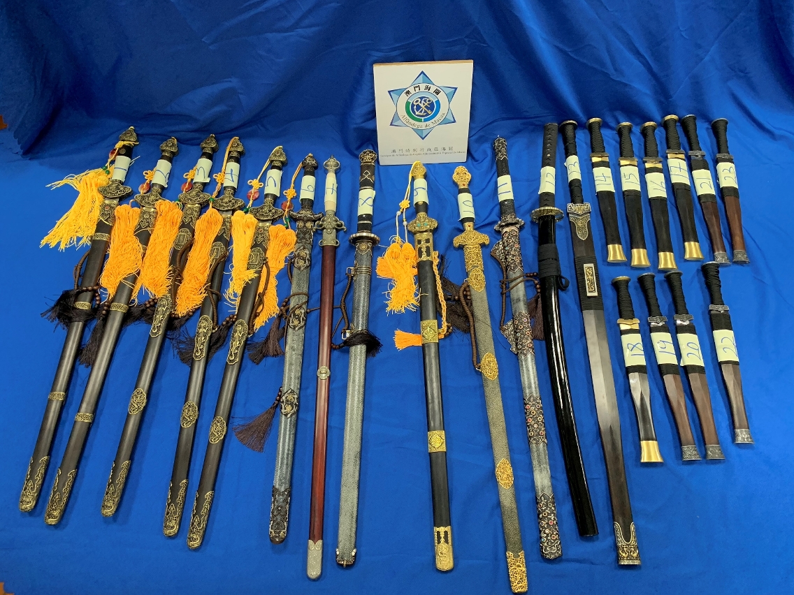 另于9日下午,海关接获机场货运站安检员通报,透过X光机检测发现一批由内地经澳门转运台北的货物中藏有怀疑刀具。关员检查该批货物,发现内藏23把金属刀剑,有关物品其后经治安警察局人员鉴定,证实属第77/99/M号法令核准之《武器及弹药规章》中受管制之武器。一名男性物流配送员涉案,已被移交检察院处理。