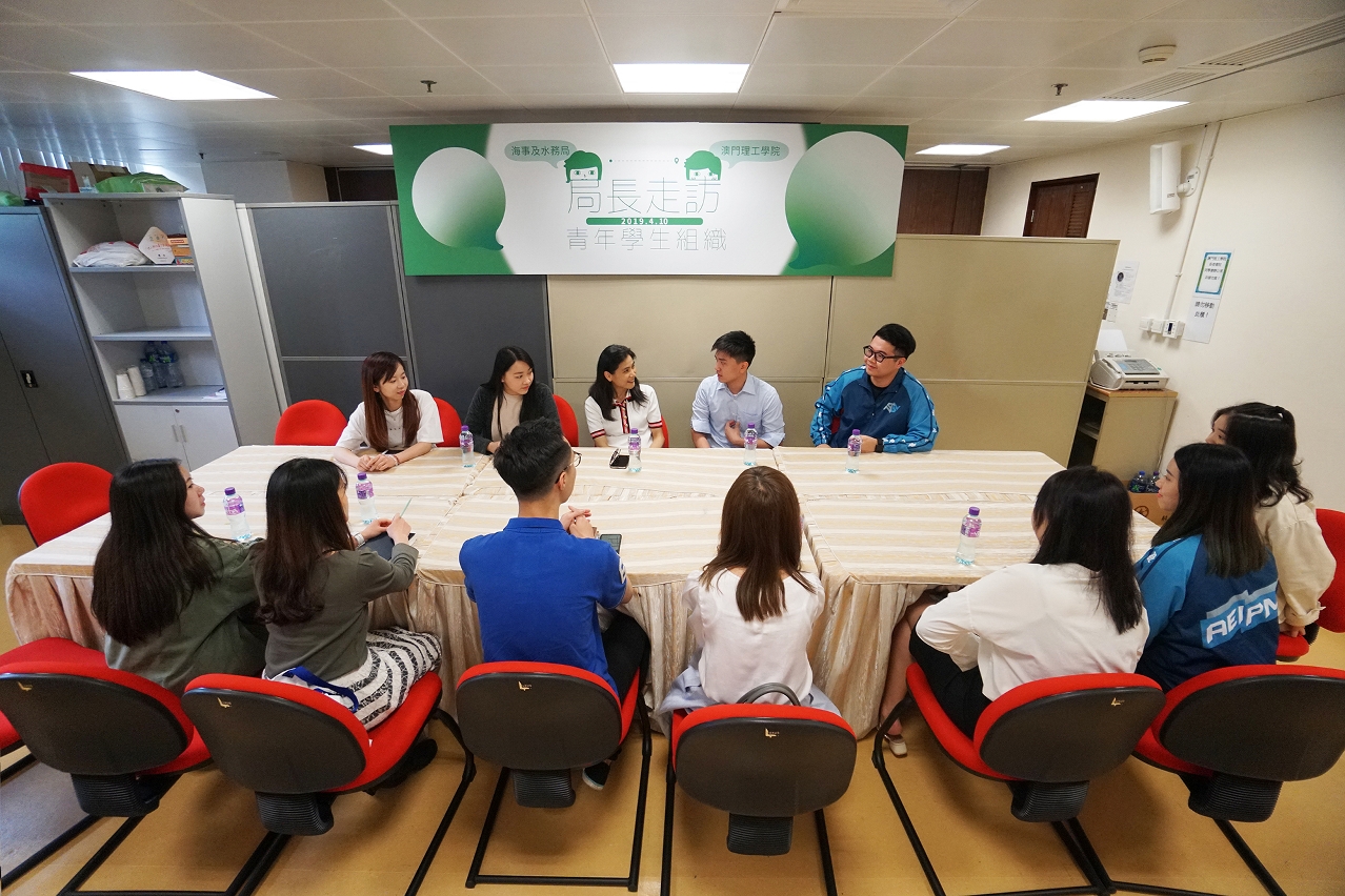 为响应特区政府的青年工作,加强与本澳高校学生组织的互动交流,海事及水务局局长黄穗文日前走访澳门理工学院学生会,并与学生会骨干成员举行座谈,了解学生会的会务运作、活动和学生的学习概况。