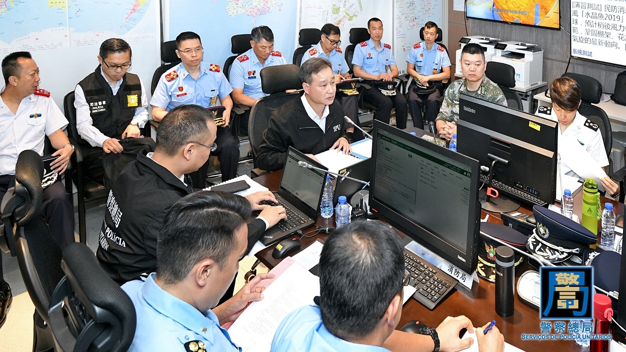 【新闻局】“水晶鱼2019”演习-警察总局局长、联合行动指挥官马耀权傍晚在民防行动中心主持民防架构代表会议。
