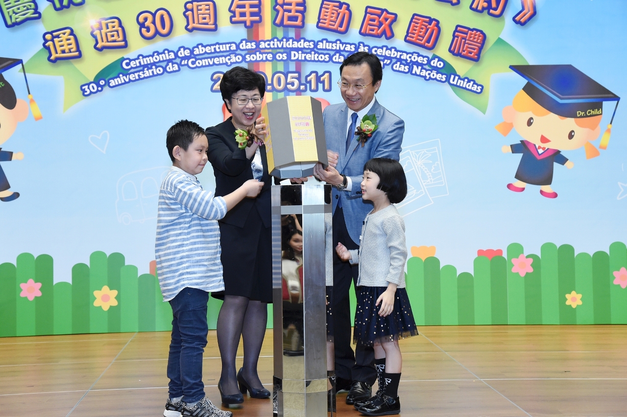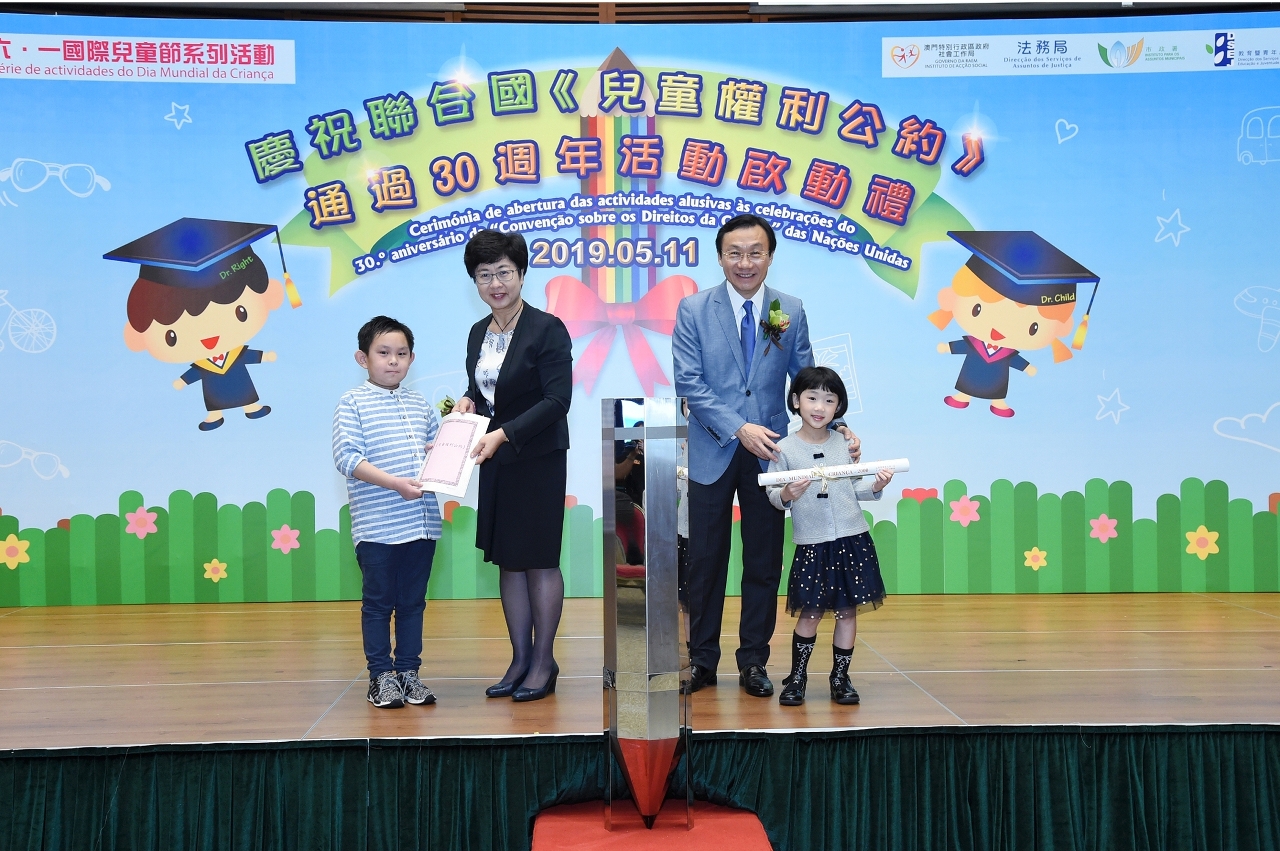 由社会工作局联同法务局、市政署、教育暨青年局以及体育局组成的“六.一国际儿童节组织委员会”合办“六.一国际儿童节系列活动2019”之“庆祝联合国《儿童权利公约》通过30周年活动启动礼”,今(11)日在澳门科学馆顺利举行,目的为提升社会大众对儿童权利的关注与重视。