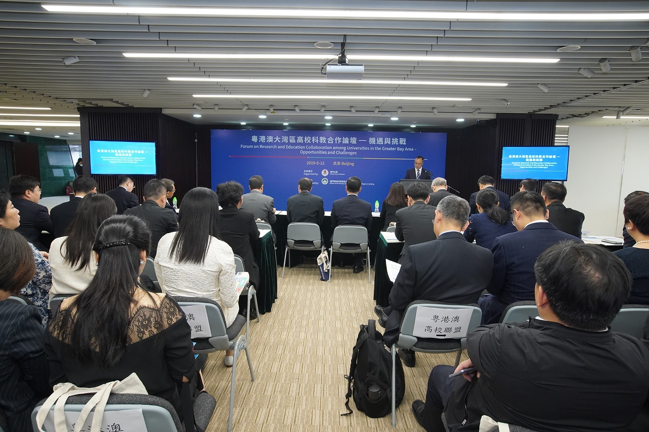 适逢今年中华人民共和国成立70周年、澳门回归祖国20周年双庆年,以及《粤港澳大湾区发展规划纲要》发布,澳门大学今(12日)假澳门特别行政区驻北京办事处举办“粤港澳大湾区高校科教合作论坛—机遇与挑战",与会代表就高校大湾区未来的人才培养与引进、跨校交流与合作、科技创新等议题进行探讨,冀在大湾区带来新的发展机遇之下,充分发挥高校的优势作用,深化交流、科研合作和协同创新,共同推动大湾区的发展。