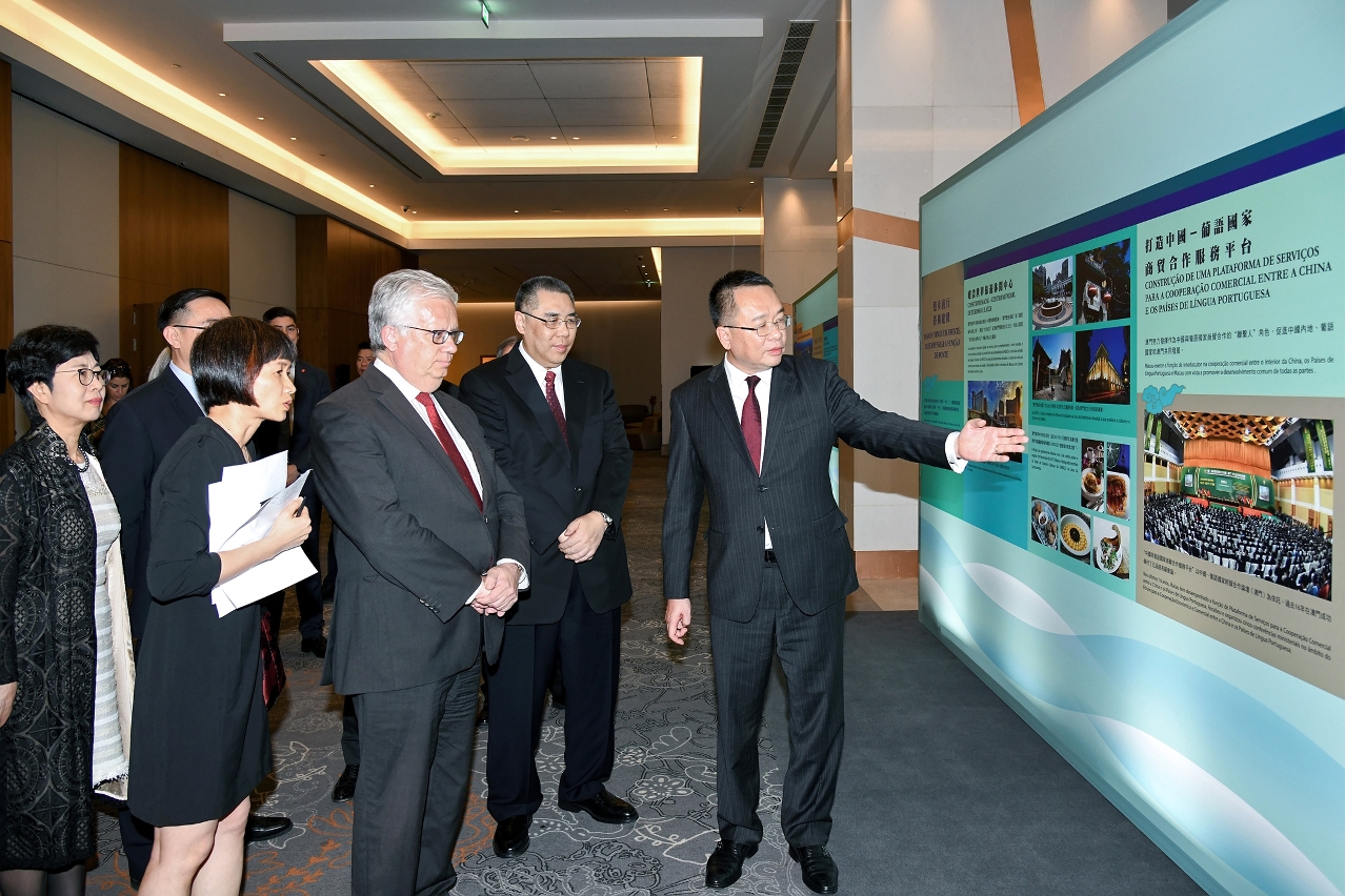 澳门特别行政区政府招待酒会同场设有“一国两制在澳门成功实践”图片展,崔世安、葡萄牙共和国内政部长爱德华多‧卡布里塔(Eduardo Cabrita)、中国驻葡萄牙大使蔡润等一众嘉宾于酒会开始前首先参观了图片展。