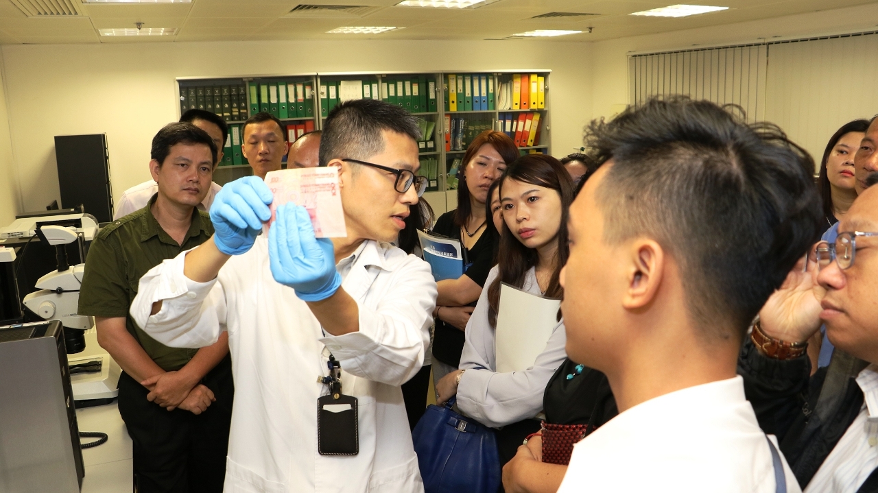 课程由司警局专责刑事侦查部门人员进行专业讲解,向学员介绍多种于大厦内发生的犯罪类型、不法份子的作案手法及预防方法,并教授学员如何察觉大厦内的犯罪迹象,以及设置模拟案发现场让学员瞭解如何协助警方进行取证,有效提高学员对相关犯罪的认识和警觉性。同时,还安排学员参观司警局刑事技术厅,让学员进一步瞭解局方借助先进的刑事检验及鉴证技术协助刑侦工作的情况,展示局方在科技强警方面的工作成果。