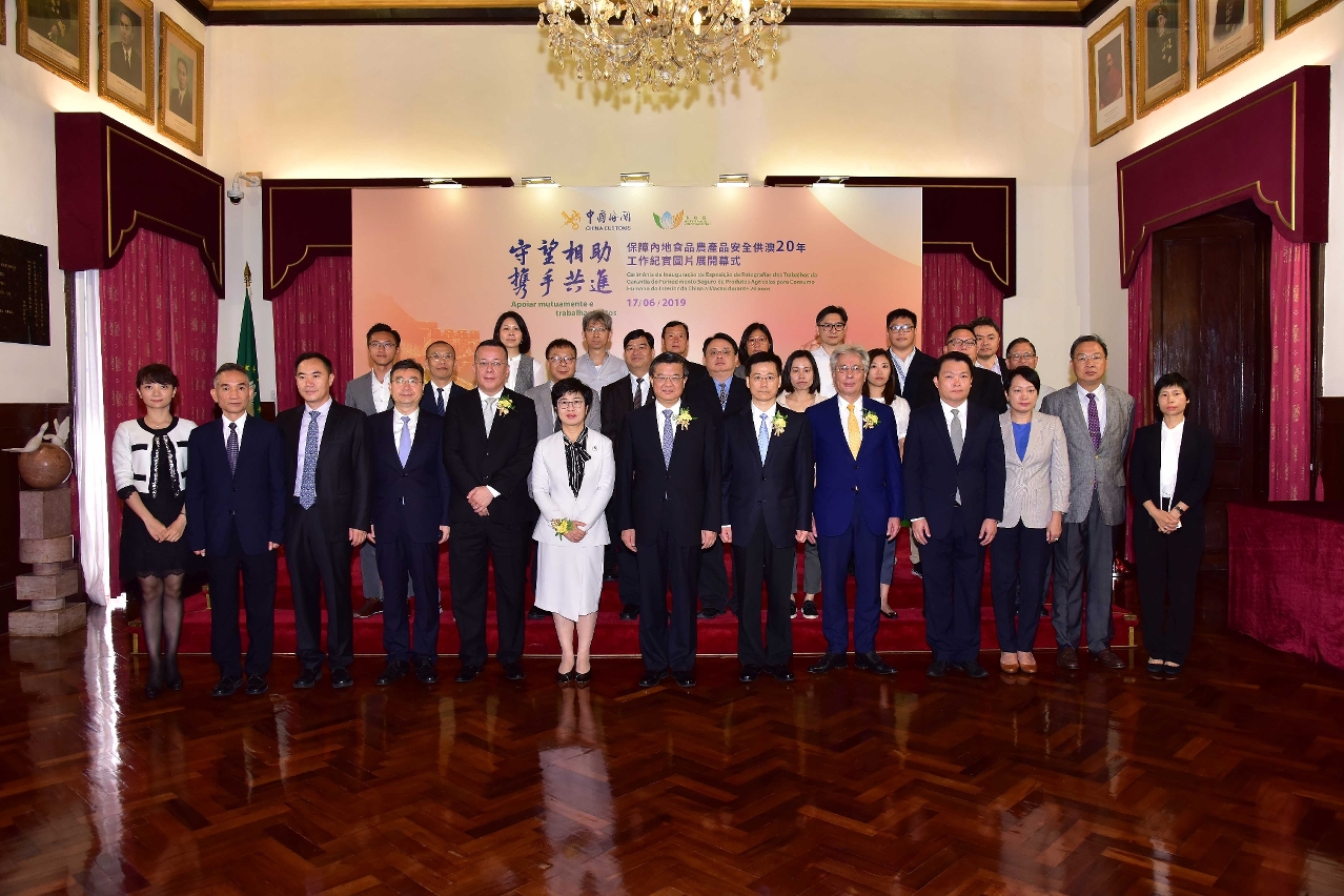 由国家海关总署及澳门特别行政区市政署联合主办之“守望相助,携手共进─保障内地食品农产品安全供澳20年工作纪实图片展”于6月17日在市政署大楼礼堂开幕,以加深公众对内地供澳食品的安全监管及稳定供应方面的瞭解,以及特区政府保障本澳食品安全的措施。