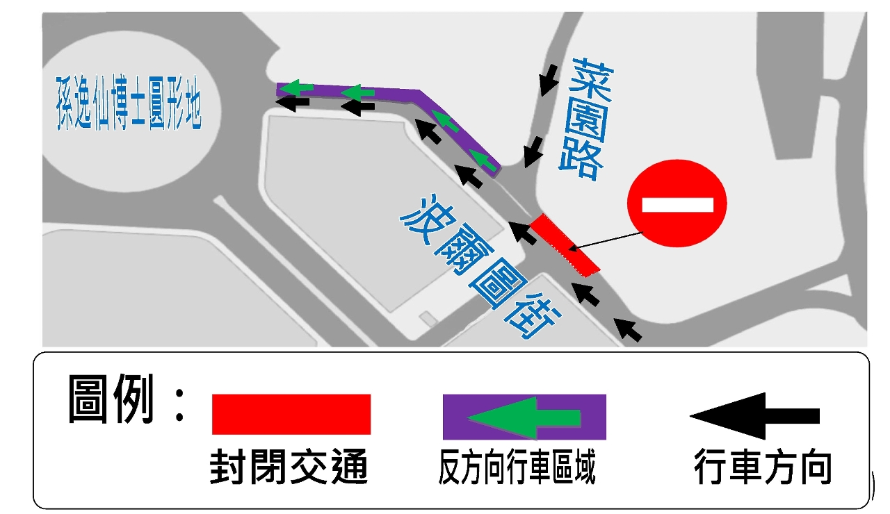配合市政署维修渠道,6月20日(周四)至22日(周六),每日上午9时30分至下午4时,氹仔菜园路与波尔图街交界封闭交通,而介乎菜园路与孙逸仙博士圆形地之间的一段内路则实施反方向行车,即车辆往孙逸仙博士圆形地的方向行驶。
